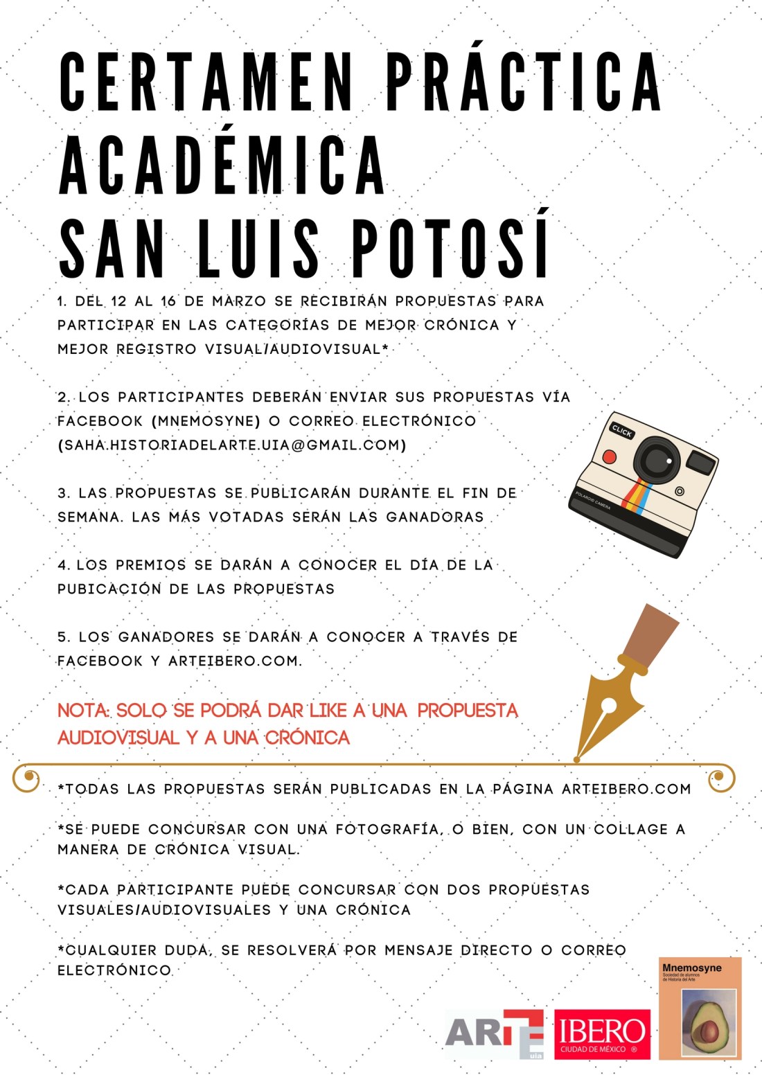 Envíen sus propuestas al Facebook de Mnemosyne Saha o al correo saha.historiadelarte.uia@gmail.com