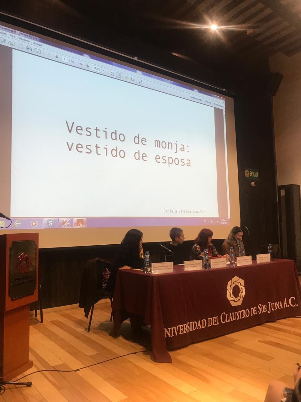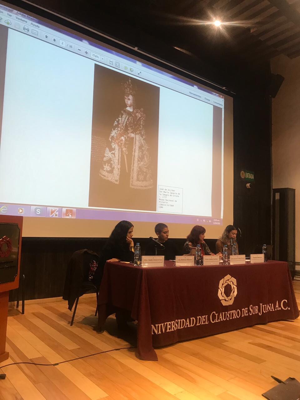 Daniela presentó una ponencia orientada hacia la indumentaria y su relación con las monjas coronadas y Cecilia abordó la devoción plural hacia la Virgen de Guadalupe y las deficiencias en la catalogación y registro de obras no gremiales.