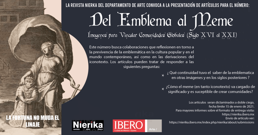La Revista Nierika del Departamento de Arte convoca a la presentación de artículos para el número «Del Emblema al Meme, imágenes para vincular comunidades globales (Siglo XVI al XXI)»