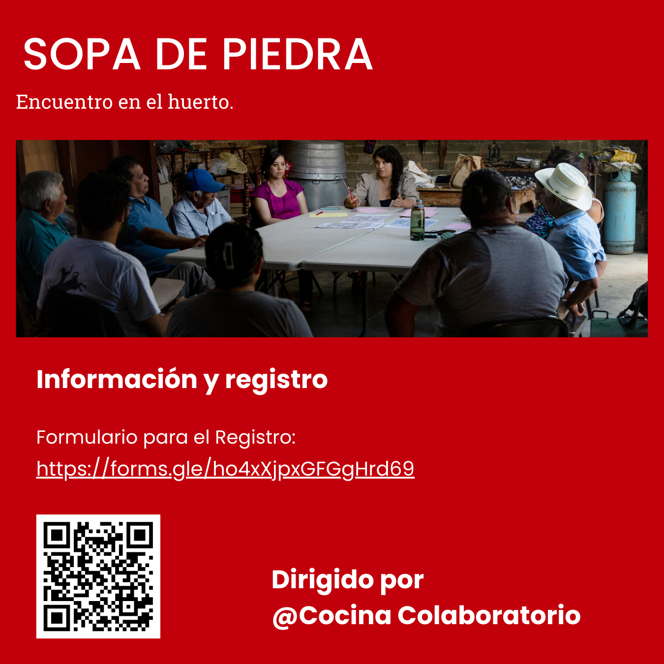 El taller de «Sopa de Piedra. Encuentro en el huerto» busca activar un espacio horizontal de diálogo, trabajo e intercambio de saberes alrededor de la huerta, en el que los participantes compartirán las interconexiones visibles e invisibles que emergen entre quienes compartimos el suelo, las semillas y los alimentos.