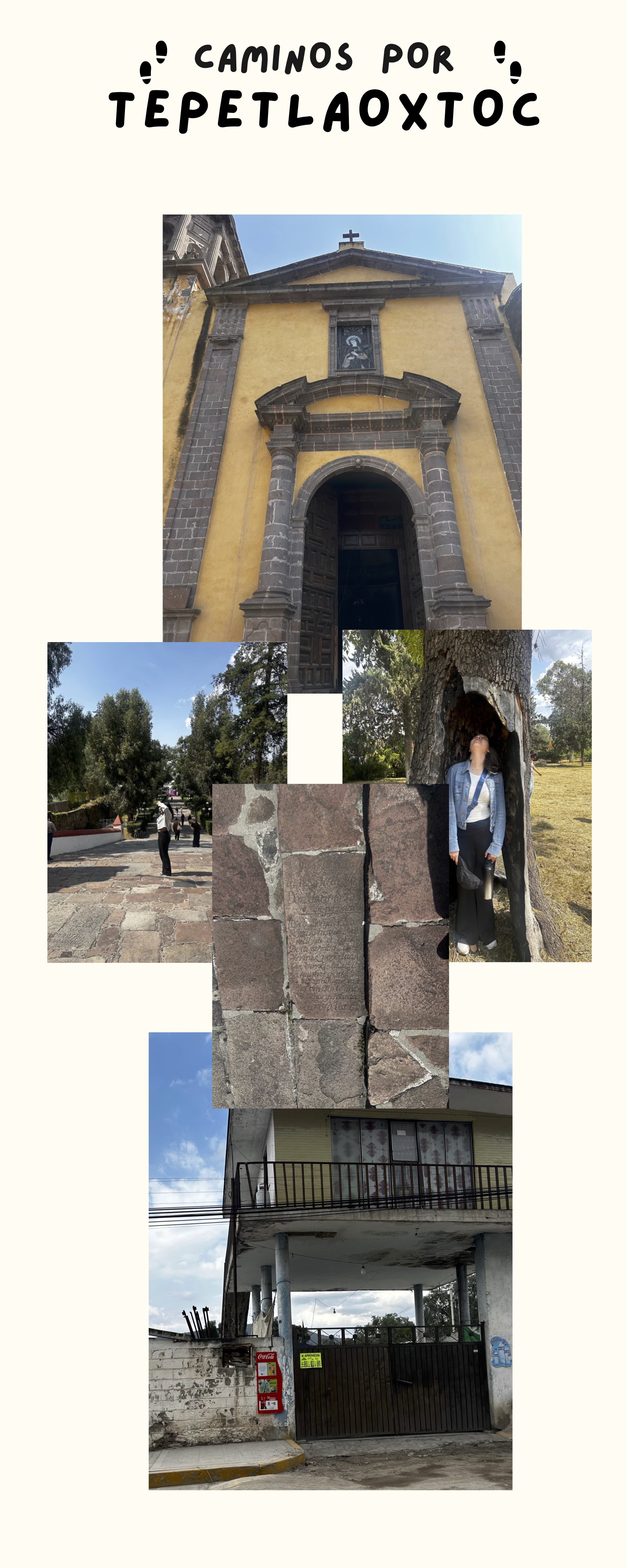 Primero de noviembre del año 2024, el día en el que conocería Tepetlaoxtoc. Mi recorrido, al igual que todas las mañanas de viernes, se encontró en la Ciudad de México; sin embargo, mi destino ya se alejaba de esta rutina. Llegamos a un mercado a desayunar y de pronto las pláticas, risas y comentarios ya se relacionaban con el lugar, la comida nos hacía parte del espacio y la mesa nos mantenía en unión. Posteriormente se nos explicó sobre las rutinas de las plazas centrales y continuamos para visitar la Parroquia de Santa María Magdalena, lugar del que también nos apropiamos un recorrido y desplazamiento. Nos sentamos en unas bancas que eran parte del lugar y ahí comencé a entender el espacio y los recorridos como una fuente de investigación.
