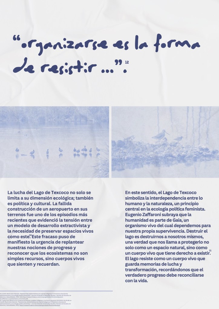 Cabe mencionar que este ensayo está escrito desde una voz y perspectiva sobre el caso del Parque Ecológico de Texcoco está basada en la información que he recopilado, pero reconozco que no viví la situación de cerca. Aunque conozco algunos detalles sobre la resistencia de las comunidades y las problemáticas de desplazamiento y despojo, mi conocimiento proviene de fuentes secundarias, lo que implica que no tengo acceso a toda la historia ni a los matices que sólo pueden entender quienes han estado directamente involucrados en el conflicto. Esto significa que mi análisis puede tener sesgos, ya que estoy interpretando los eventos desde una distancia física y emocional. Reconozco que, al no haber experimentado personalmente las consecuencias sociales y ambientales, mi comprensión de las implicaciones es limitada.
