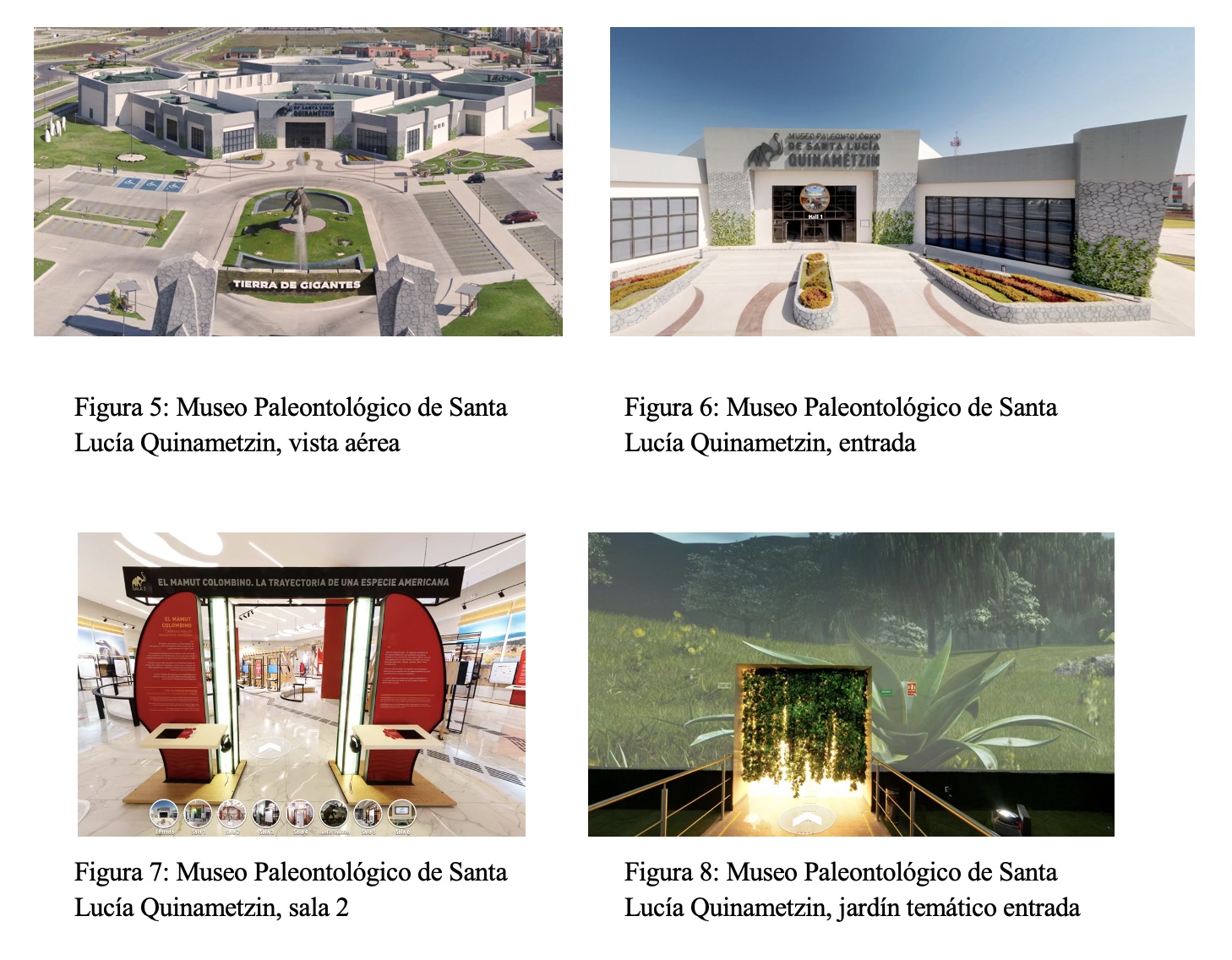 El segundo ejemplo museográfico, relacionado con hallazgos de mamuts, conlleva un cambio de presupuesto y de agenda política. Además de almacenar mucho más piezas arqueológicas, este proyecto es el resultado de un esfuerzo multidisciplinario del INAH y se tituló: salvamento arqueológico en Santa Lucía. Una colaboración que requirió de la presencia de expertos en arqueología, paleontología, química, física, geología, antropología física, museográfica, política, comunicación y más para poder entender los procesos por los cuales la fauna del pleistoceno llegó a este lugar, cuidar los restos óseos y educar a la población sobre la paleo fauna del Estado de México. Este proyecto abarca los restos óseos encontrados en el aeropuerto Felipe Ángeles, la Base Aérea de Santa Lucía y de Tultepec II en San Antonio Xahuento, proyectos arquitectónicos que siempre contemplaron la posibilidad de encontrar fauna del pleistoceno durante el desarrollo de sus construcciones. Cabe recalcar, que el aeropuerto Felipe Ángeles y la Base Aérea de Santa Lucía están ligados con el discurso presidencial de la cuarta transformación del expresidente Andrés Manuel López Obrador, ver figura 12. El propósito de este proyecto fue hacer una reconstrucción completa la zona en el Pleistoceno Tardío, además de algunos beneficios a la figura pública de este político.